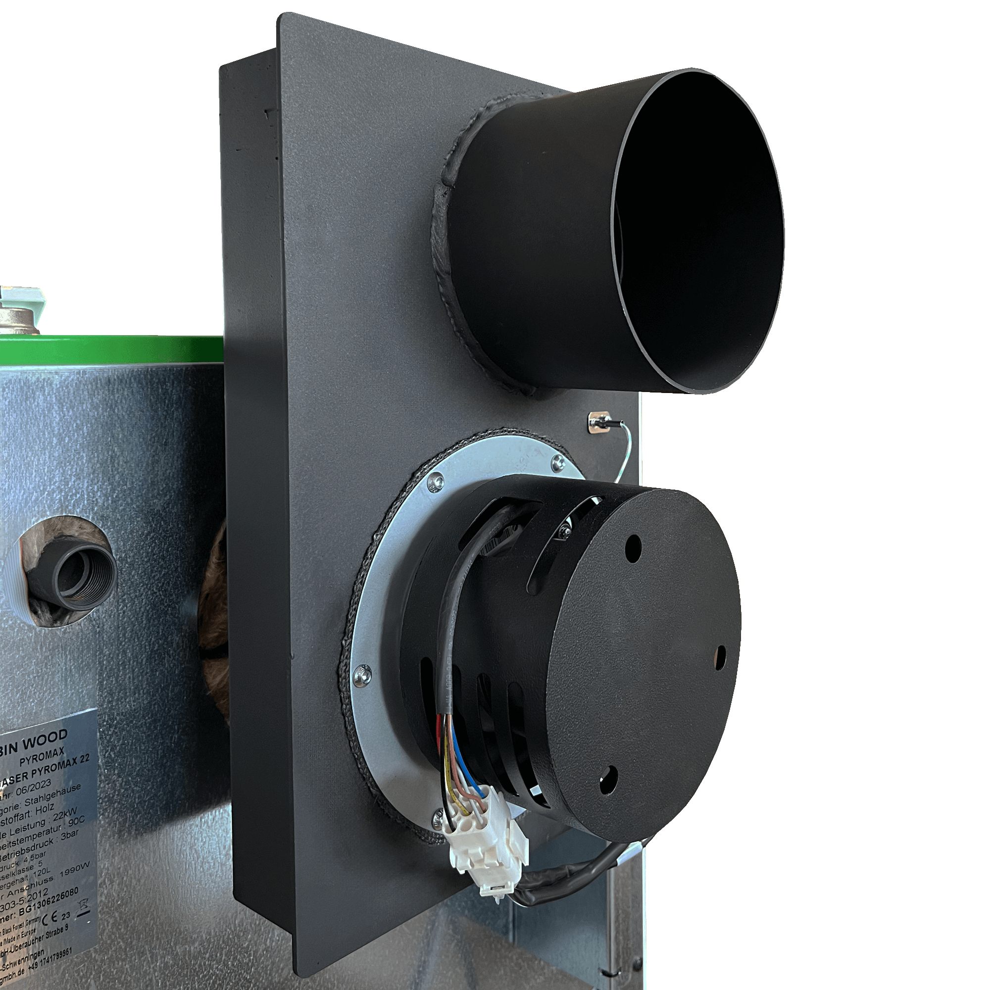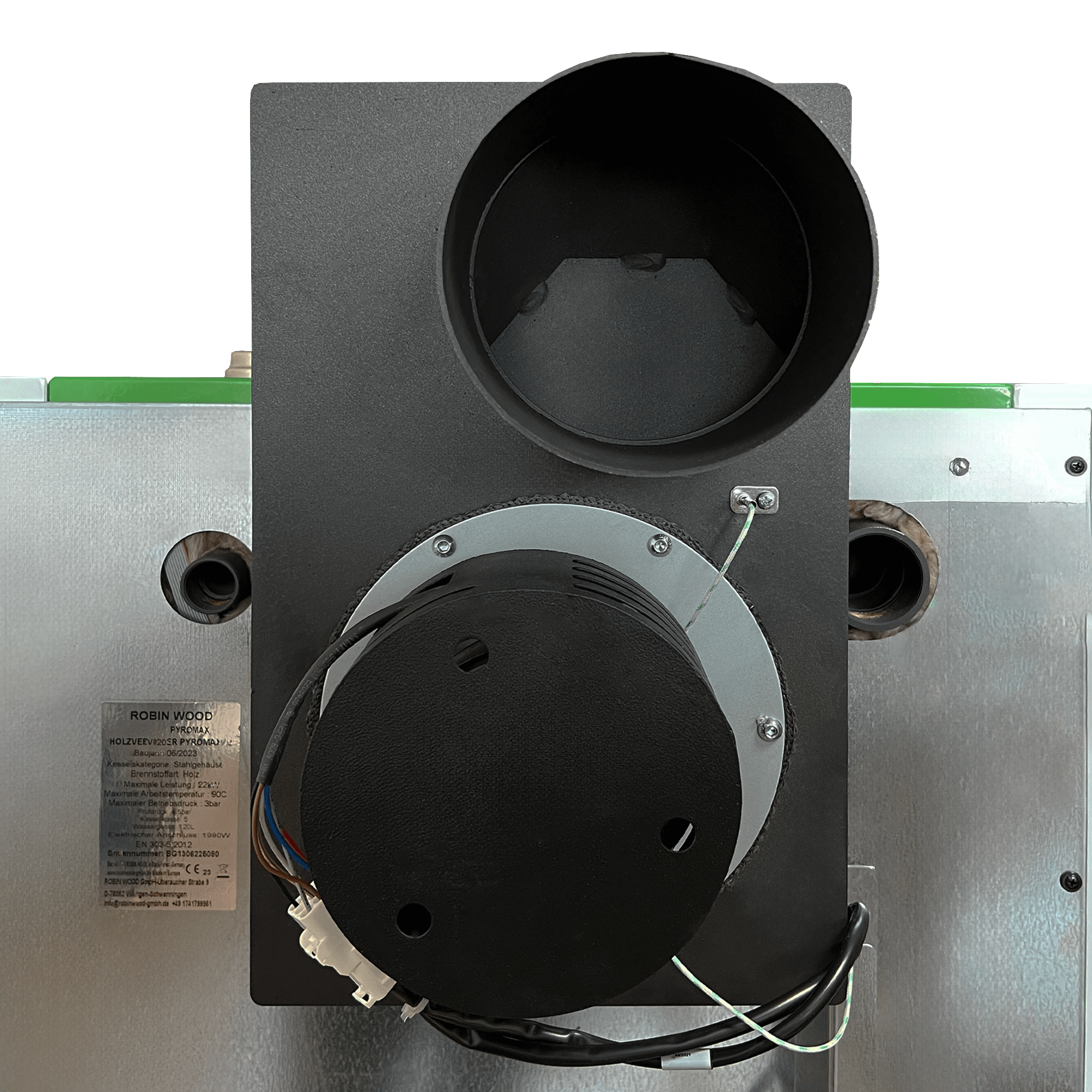 1x PyroMax automatischer Holzvergaser Kessel 40 kW mit Verbrennungsluftgebläse und Reinigungsschieber
