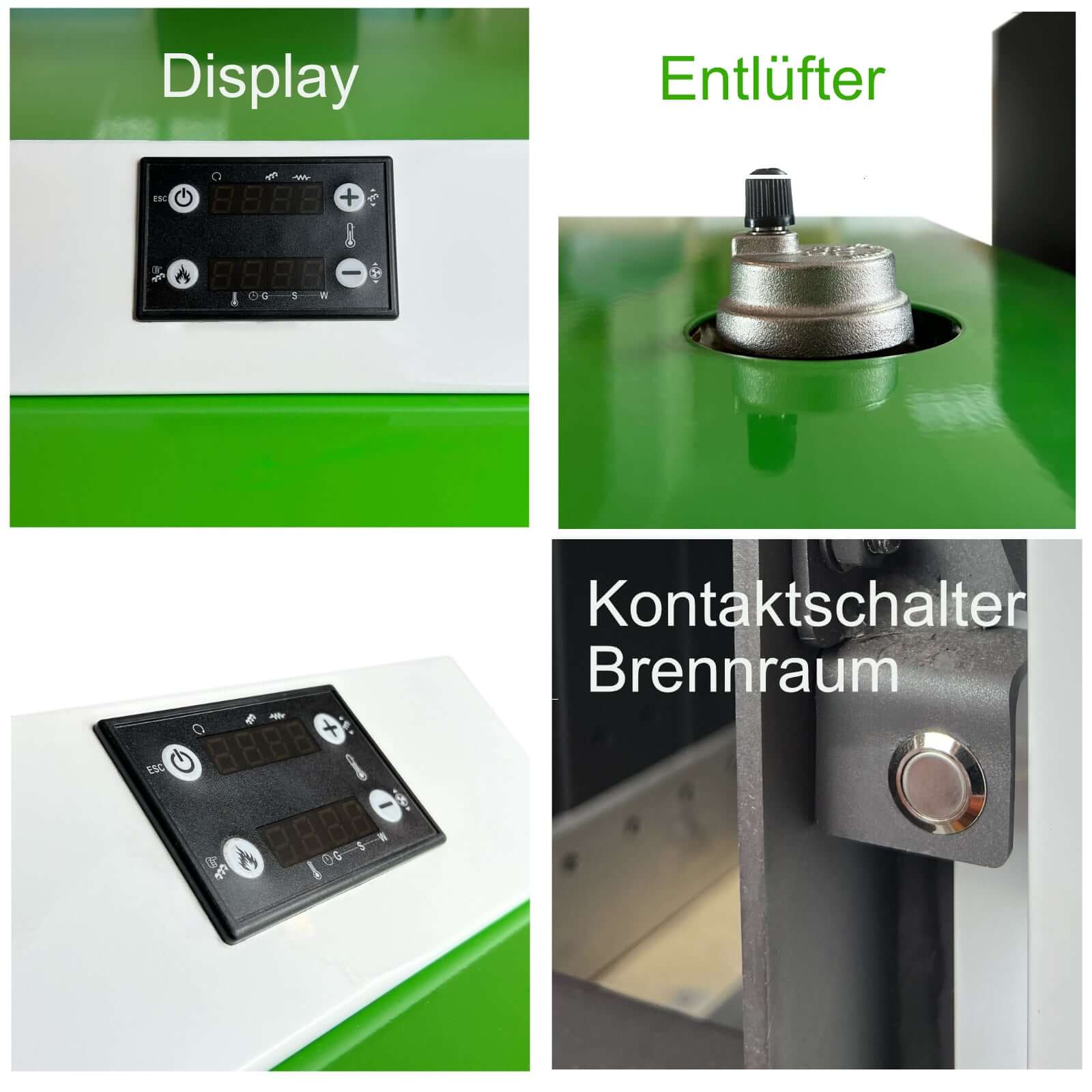 Verbrauch: sparsamer Scheitholzverbrauch dank Holzvergasertechnik und großer Brennkammer für 500 mm Scheite