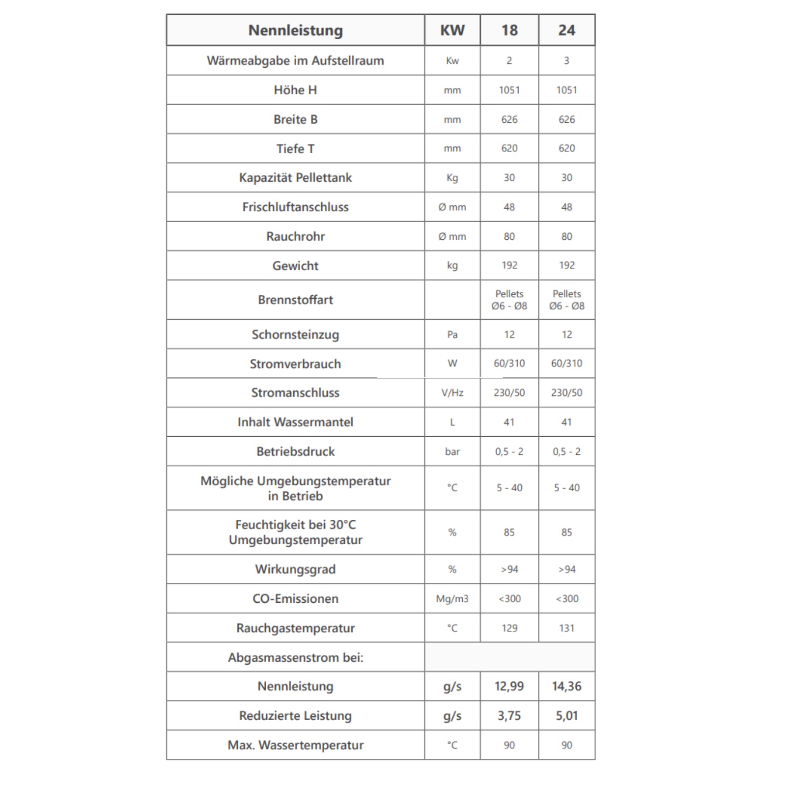 Technische Daten Robin Wood Woody 18 kW: