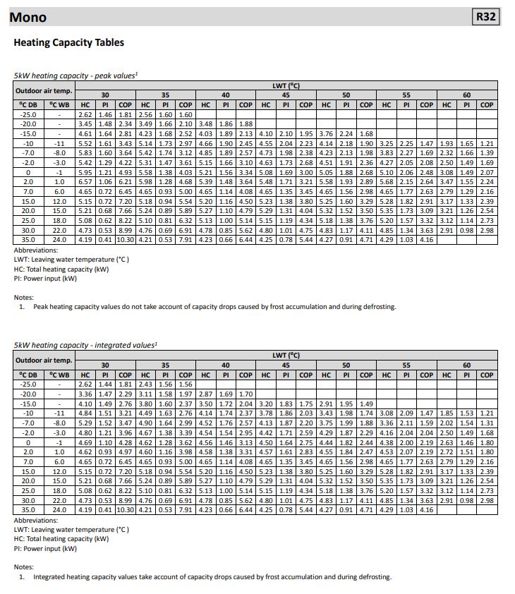 – heizung: Außentemperatur 7°C DB, 6°C WB; EWT 47°C, LWT 55°C;