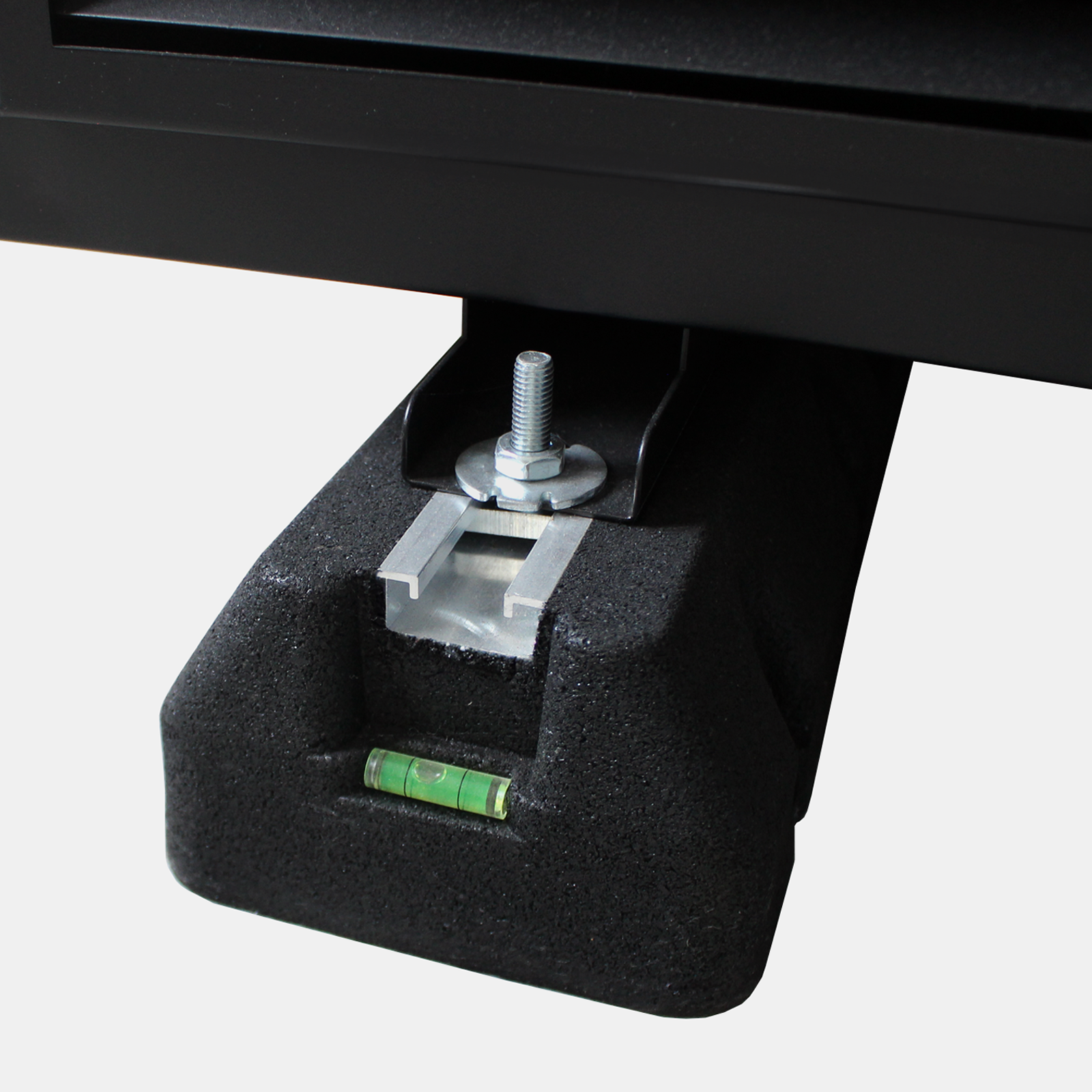 Die Füße sind mit einer integrierten Wasserwaage ausgestattet, die Ihnen eine präzise und einfache Justierung Ihrer Wärmepumpe ermöglicht. Eine korrekte Ausrichtung verbessert die Effizienz Ihrer Anlage und vermeidet potenzielle Fehlfunktionen.