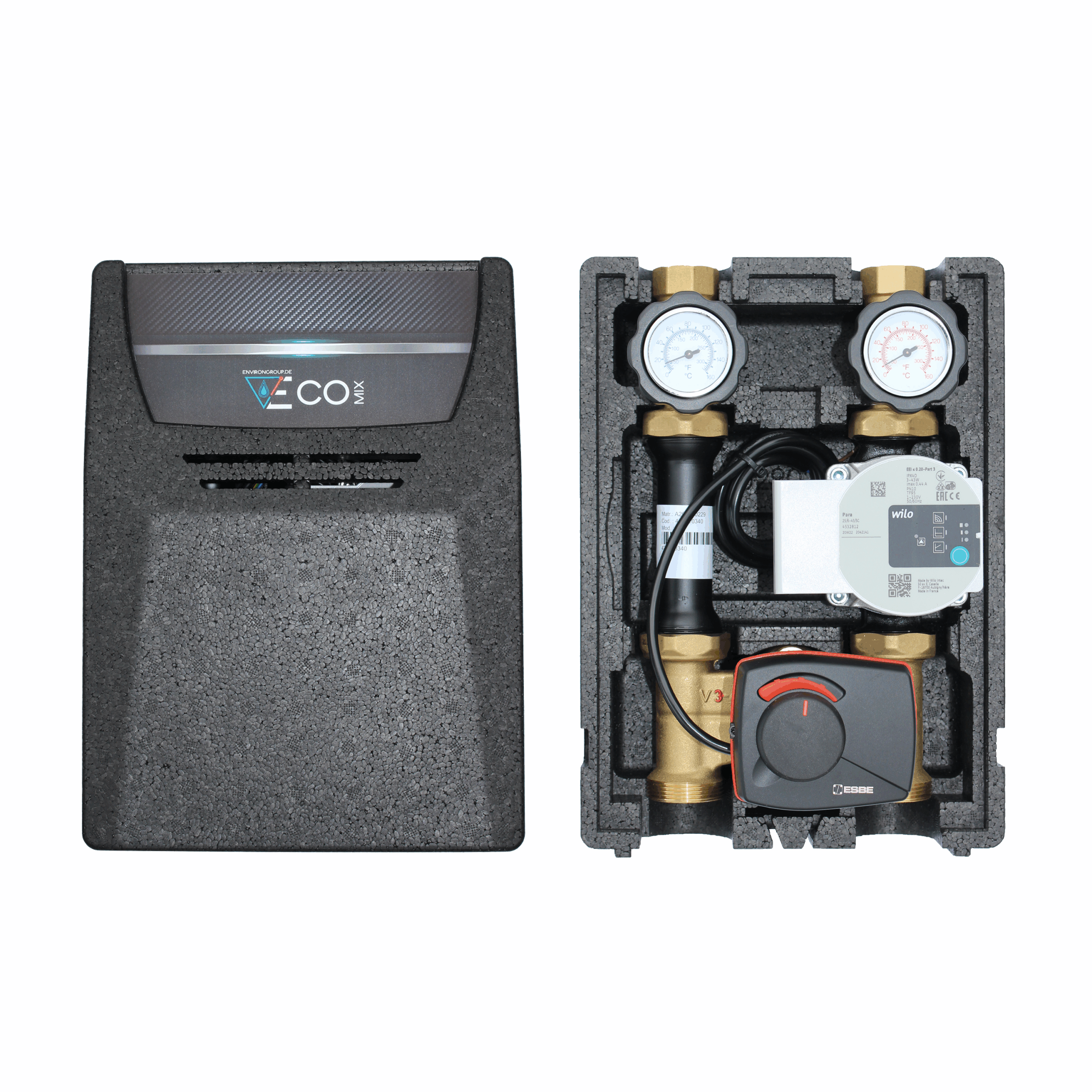 ✓ Einbaufertige EcoMix ENH001 Heizkreispumpengruppe mit Drei-Wege-Mischer, ESBE ARA661 Stellmotor und Wilo Para 25/6 Hocheffizienzpumpe
