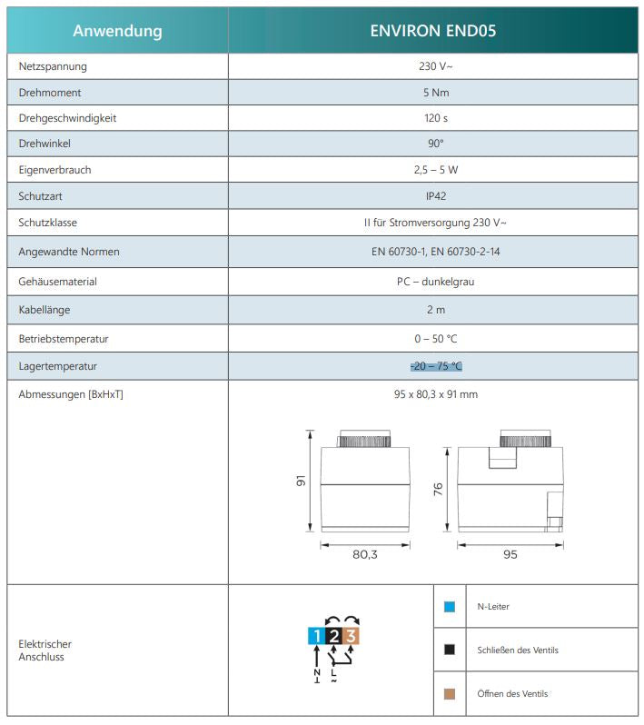 ▸ Der ENVIRON Stellmotor END05 mit 3-Punkt-Regelung ermöglicht vier verschiedene Anbringungspositionen am Ventil