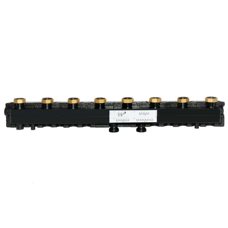 Installationsfreundliches Modulsystem: 125 mm Achsabstand, Anschlüsse 1″ IG (Verbraucher) / 1½“ AG (Anlage), wendbarer Vor-/Rücklauf und Verteilerbalken für 4 Heizkreise – schnelle, saubere Montage