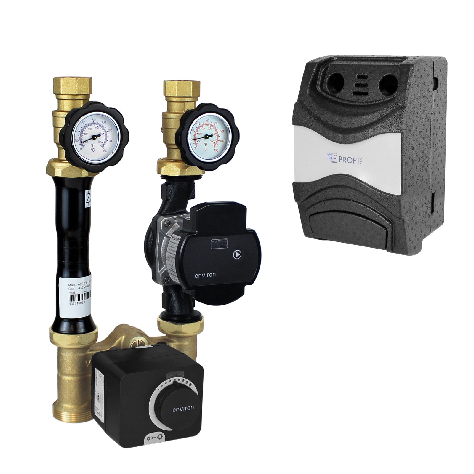 Präzise Regelung je Heizkreis: jeder Kreis mit Drei-Wege-Mischer aus Messing und elektrischem Stellmotor Environ END05 – exakte Vorlauftemperatur und effizienter Betrieb