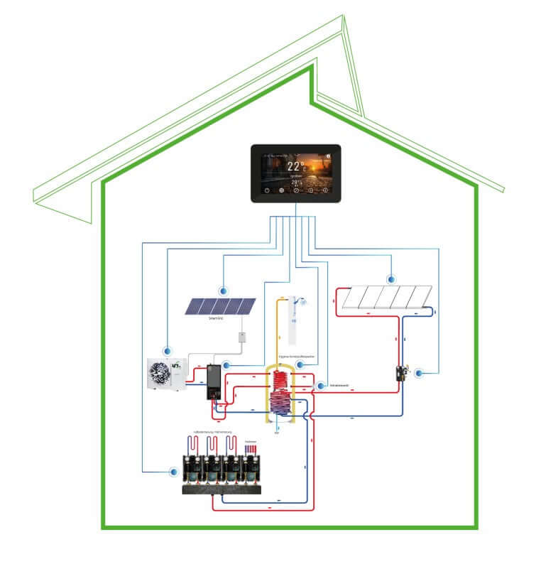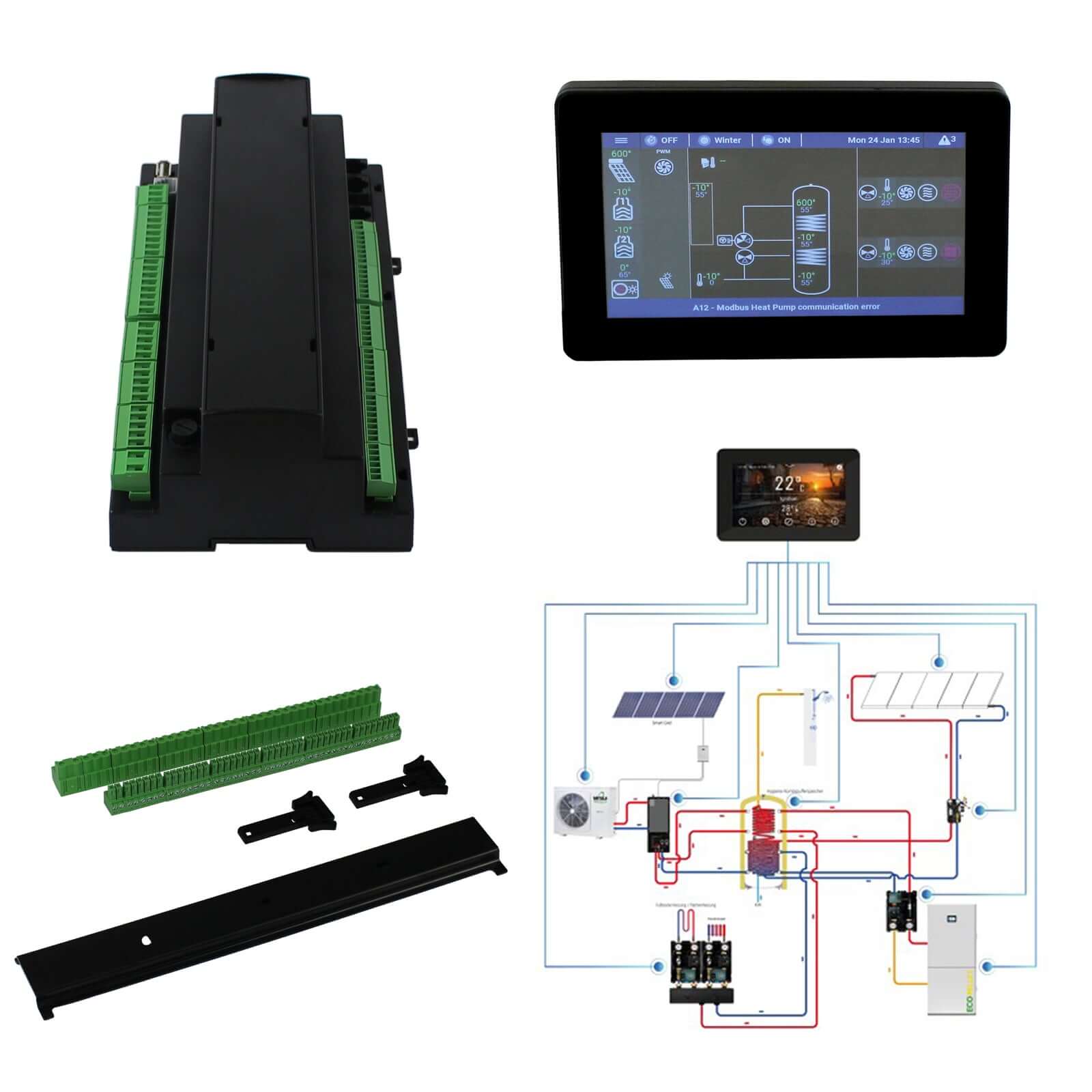 Der ENVIRON IQH – CLIMA1000 ist eine Steuereinheit, die mehrere Wärmequellen wie zum Beispiel einen wassergeführten Kaminofen, Wärmepumpe, Pelletkessel usw. steuern kann und es ihnen ermöglicht, auf intelligente Weise miteinander zu interagieren und dabei die wirtschaftlichste Wärmequelle zu berücksichtigen. Die Priorität der verschiedenen Wärmequellen kann vom Benutzer gewählt werden. Darüber hinaus ist ENVIRON IQH in der Lage, bis zu fünf gemischte Heizkreise witterungsgeführt verwalten.