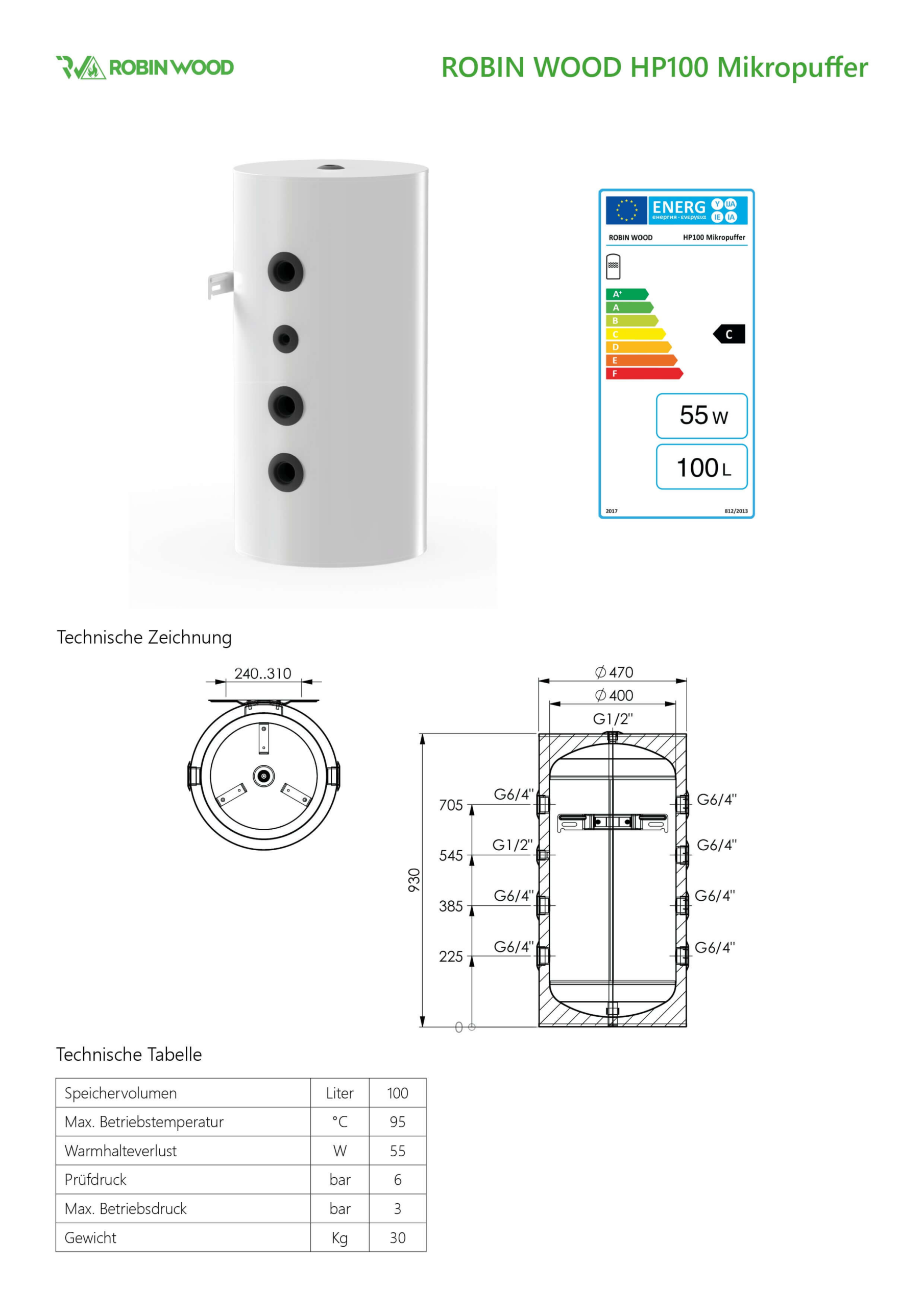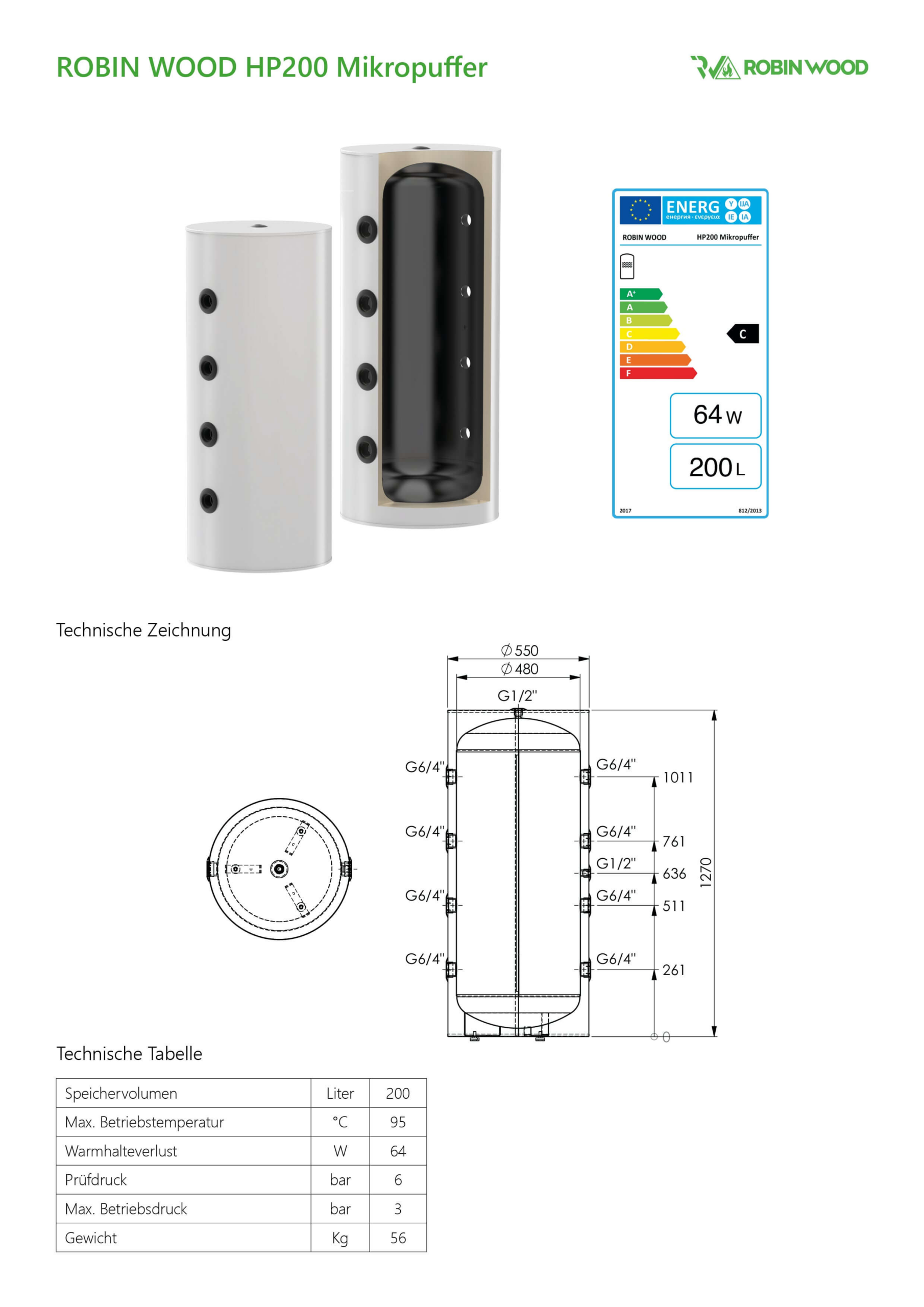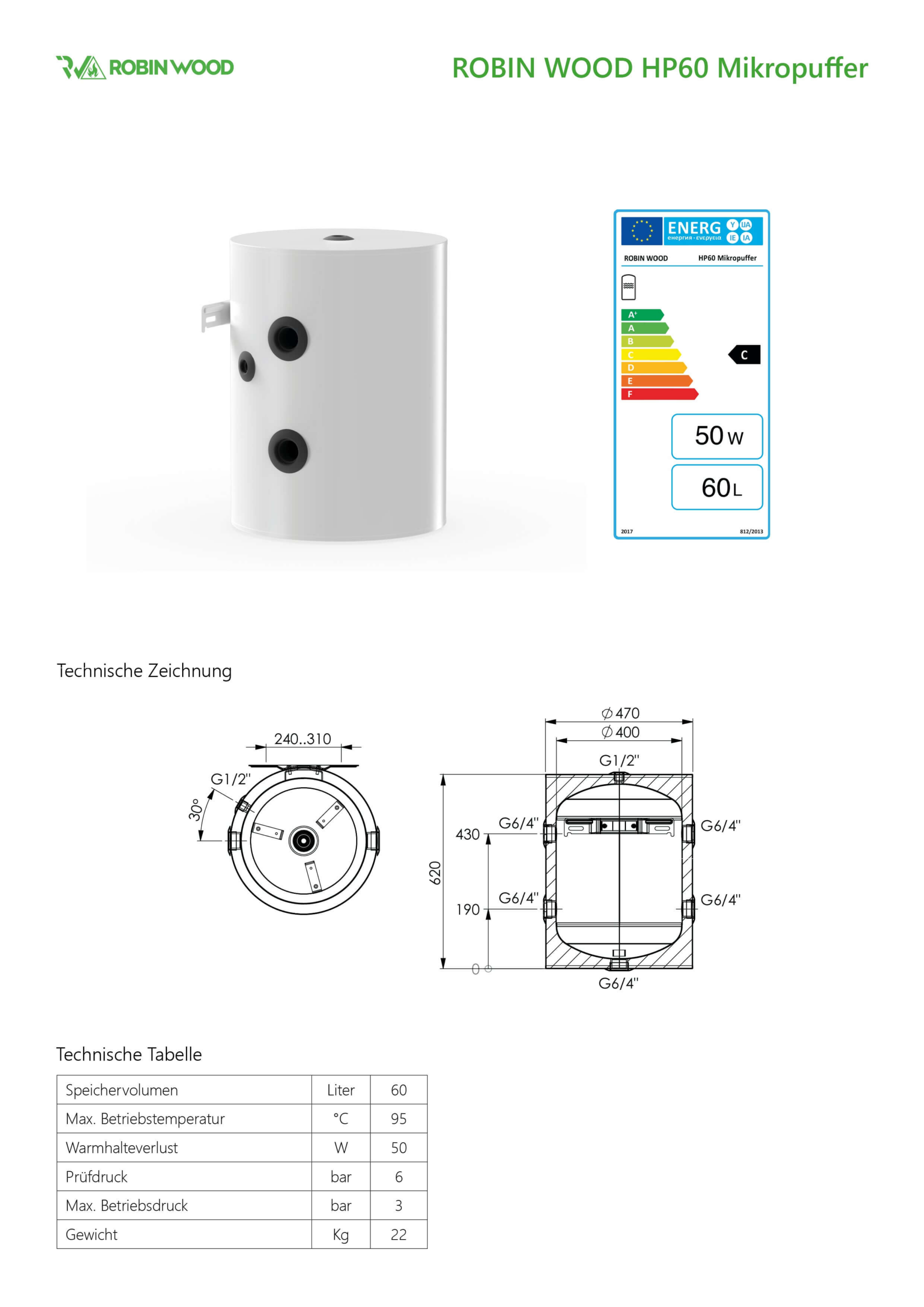 Kompakt Pufferspeicher 40 – 200 Liter Wandhängend Mikro-Drosselspeicher / Abtaukompensator / Mikrospeicher