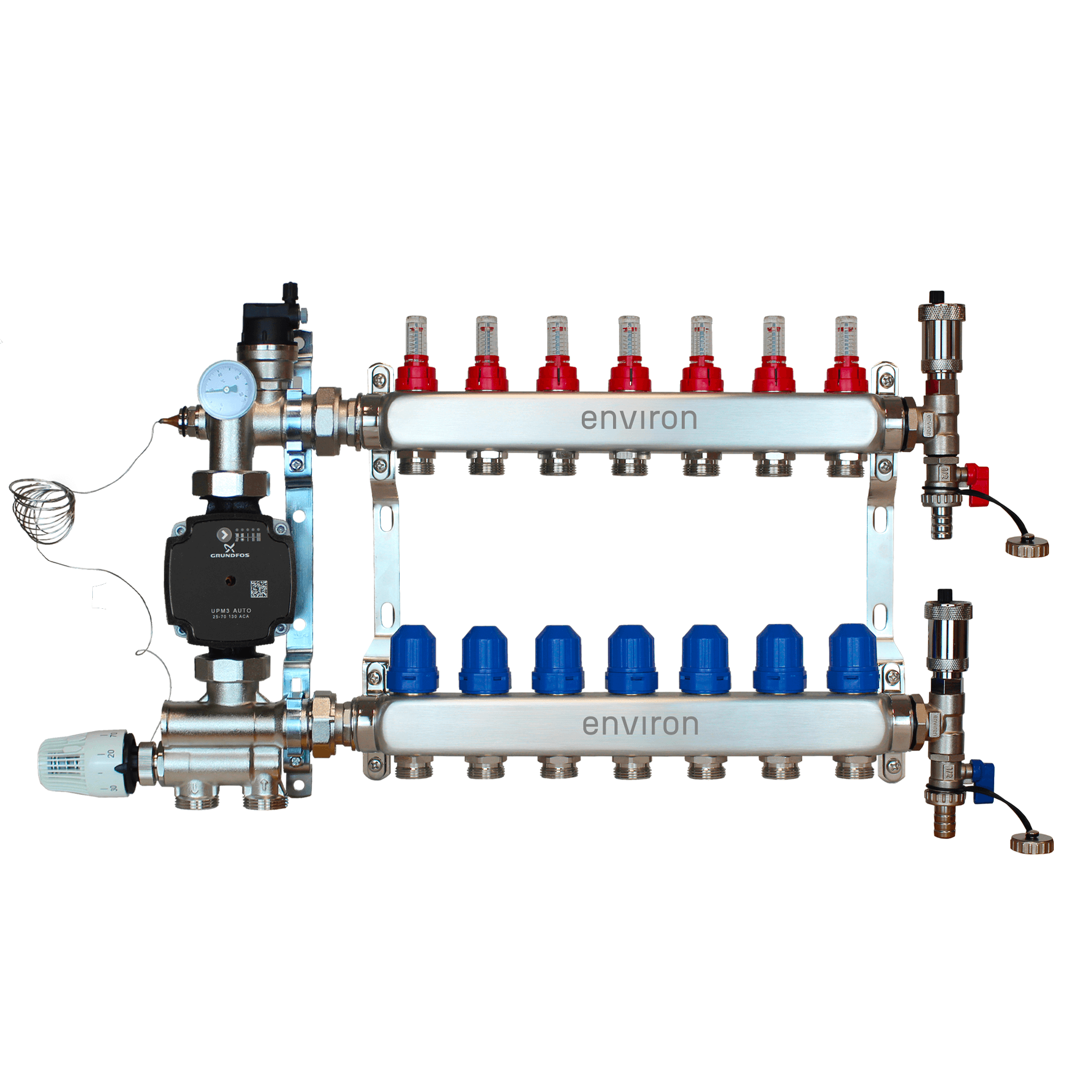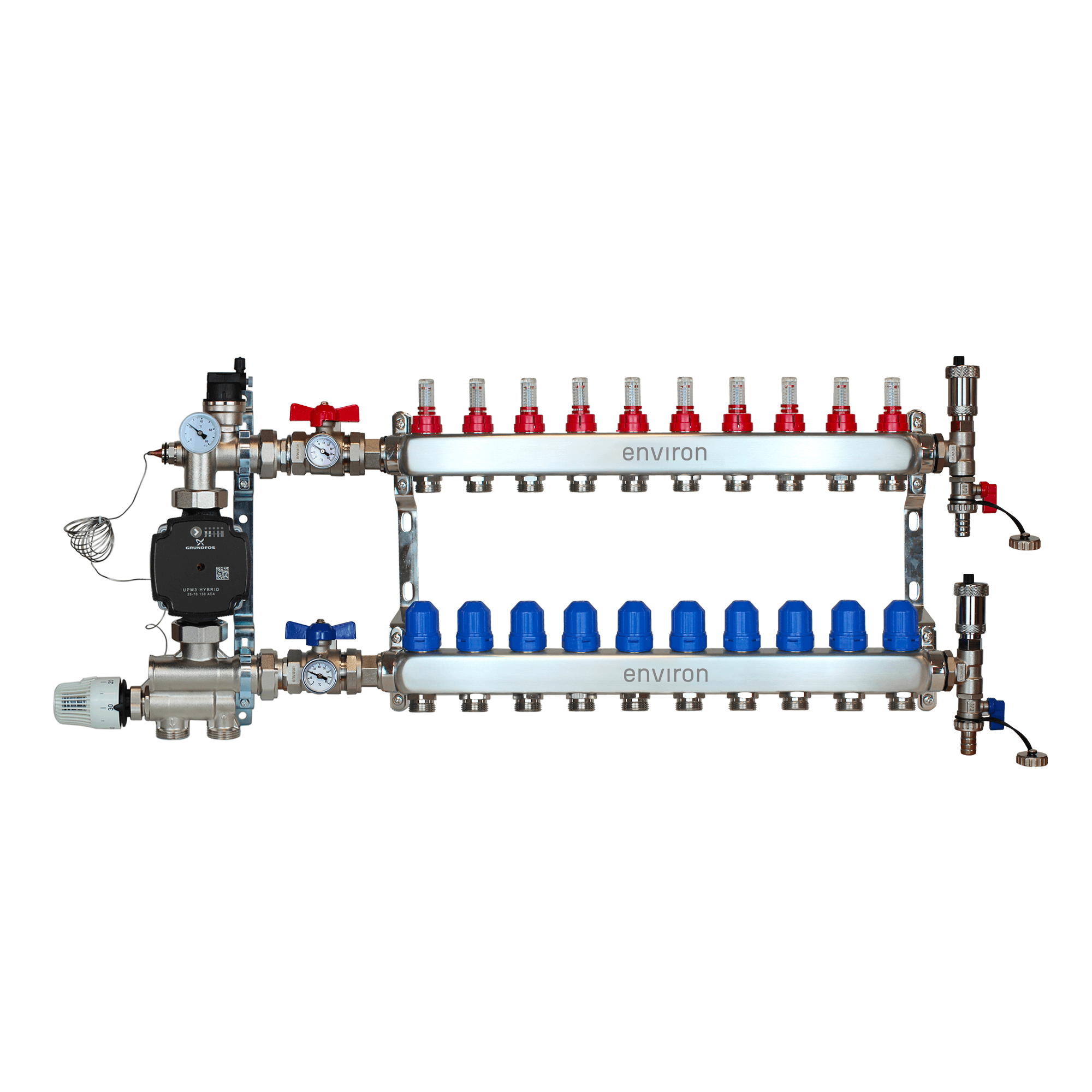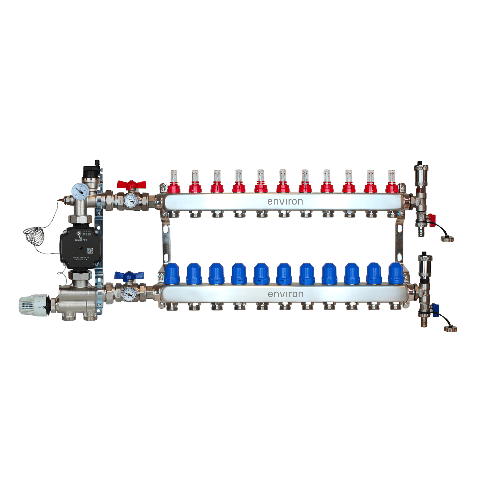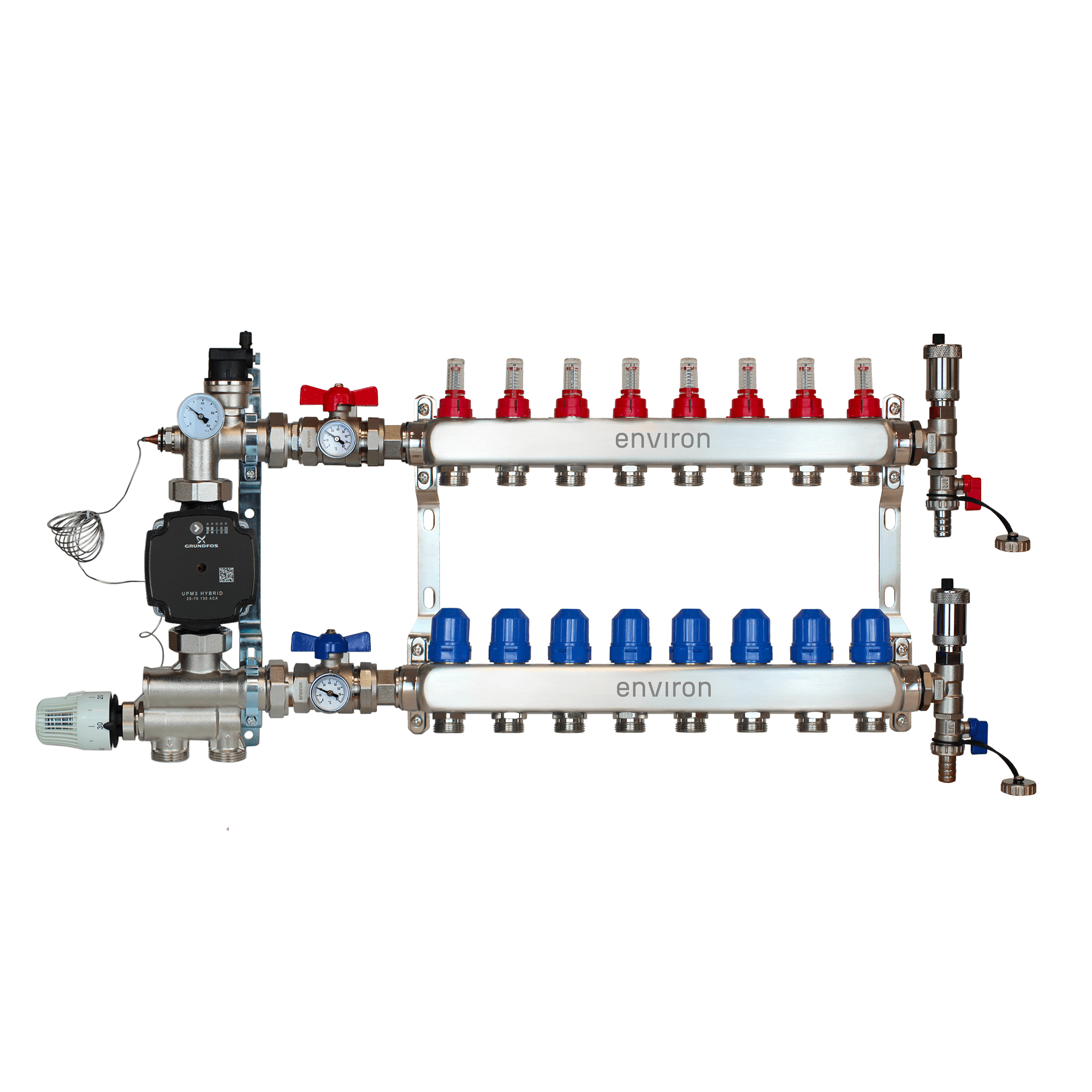 • Flexibilität: Kompatibel mit M30×1,5 Stellantrieben (Environ, Heimeier, Salus, Oventrop u. a.), Eurokonus 3/4″ Anschlüsse, einstellbare Vorlauftemperatur von 20–70 °C – perfekt für neue & nachträgliche Fußbodenheizkreise