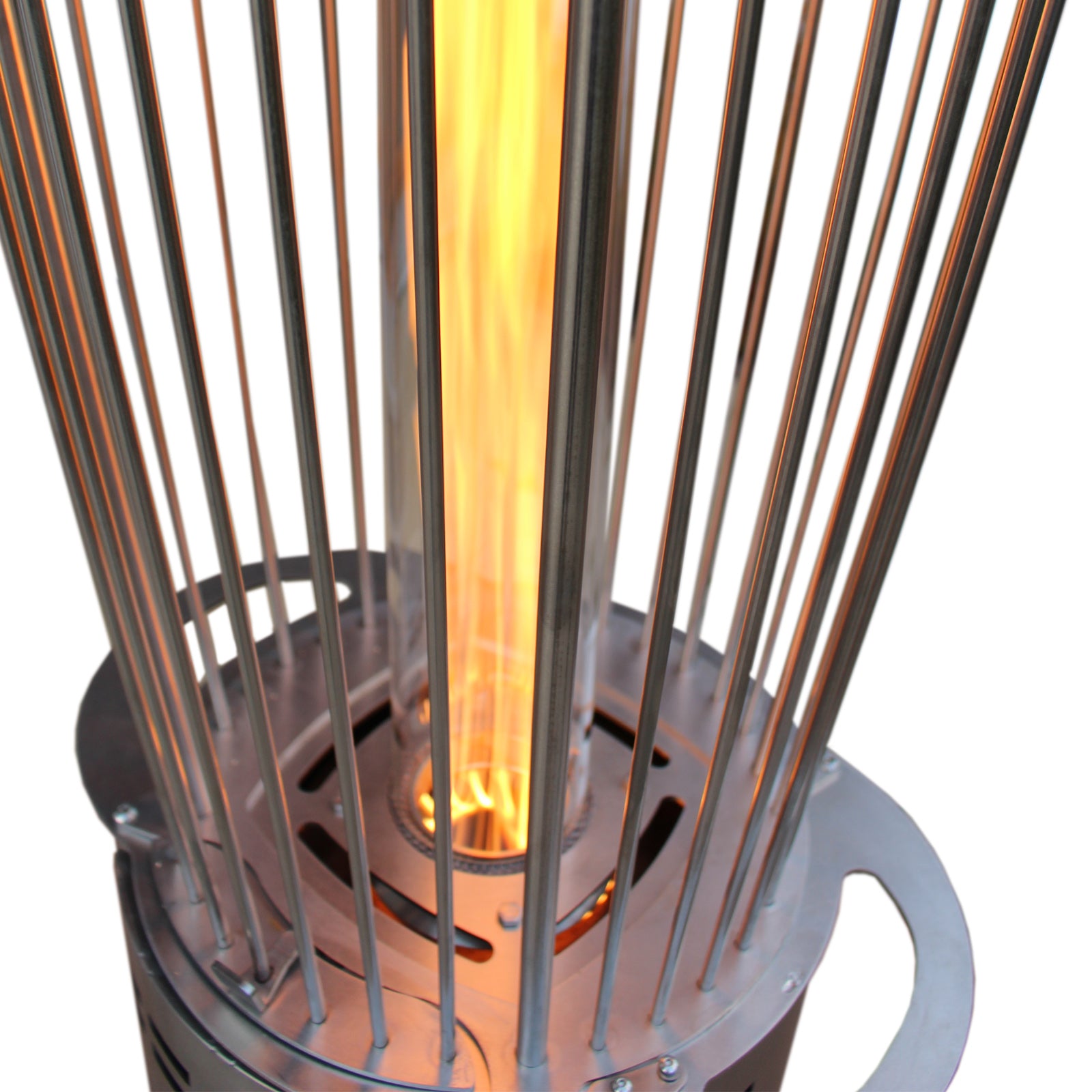 -Das kegelförmige Kopfteil, mit seinem patentiertem System, und der sich darüber befindlichen breiten Abdeckung sorgen für eine gleichmäßige Wärmeabgabe von bis zu 2 Metern.