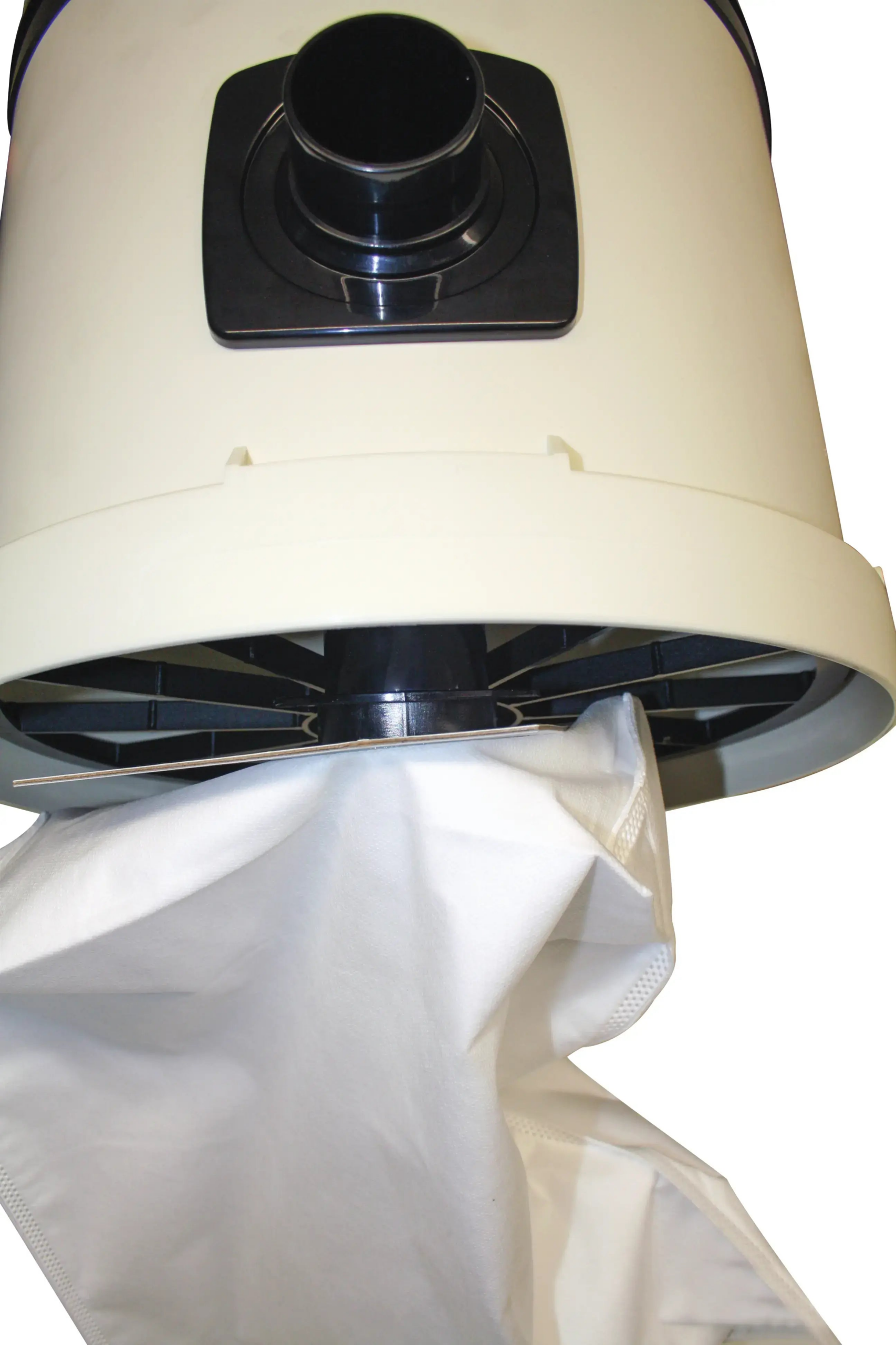 Das Filtersystem ist mit einem Einweg-Mikrofaserbeutel hoher Filtereffizienz ausgestattet (siehe Bild 1). Die Installation kann sowohl im Innen- als auch im Außenbereich erfolgen: Es kann auf einer ebenen Fläche horizontal platziert oder mithilfe der mitgelieferten Halterung an der Wand befestigt werden.
