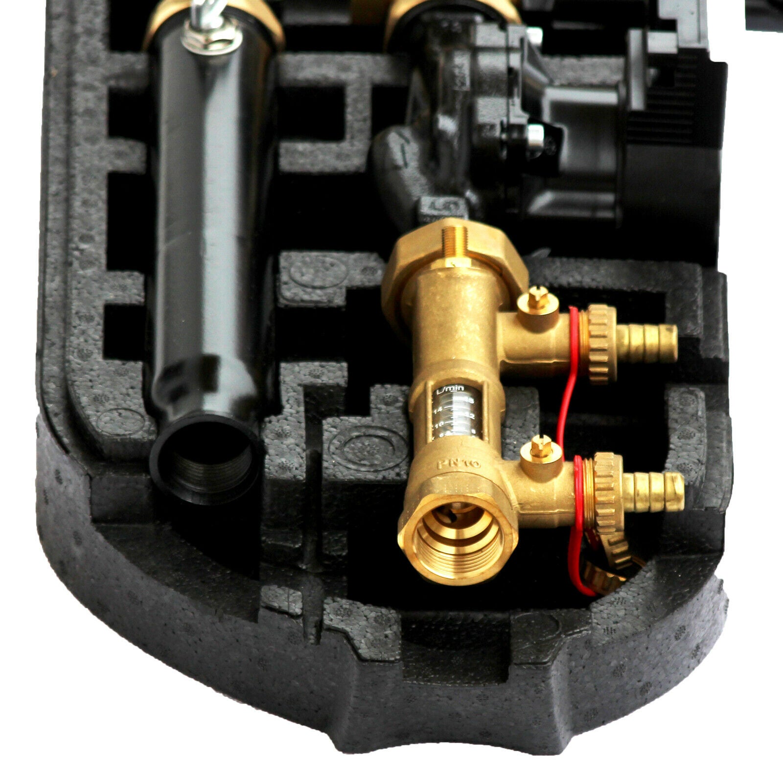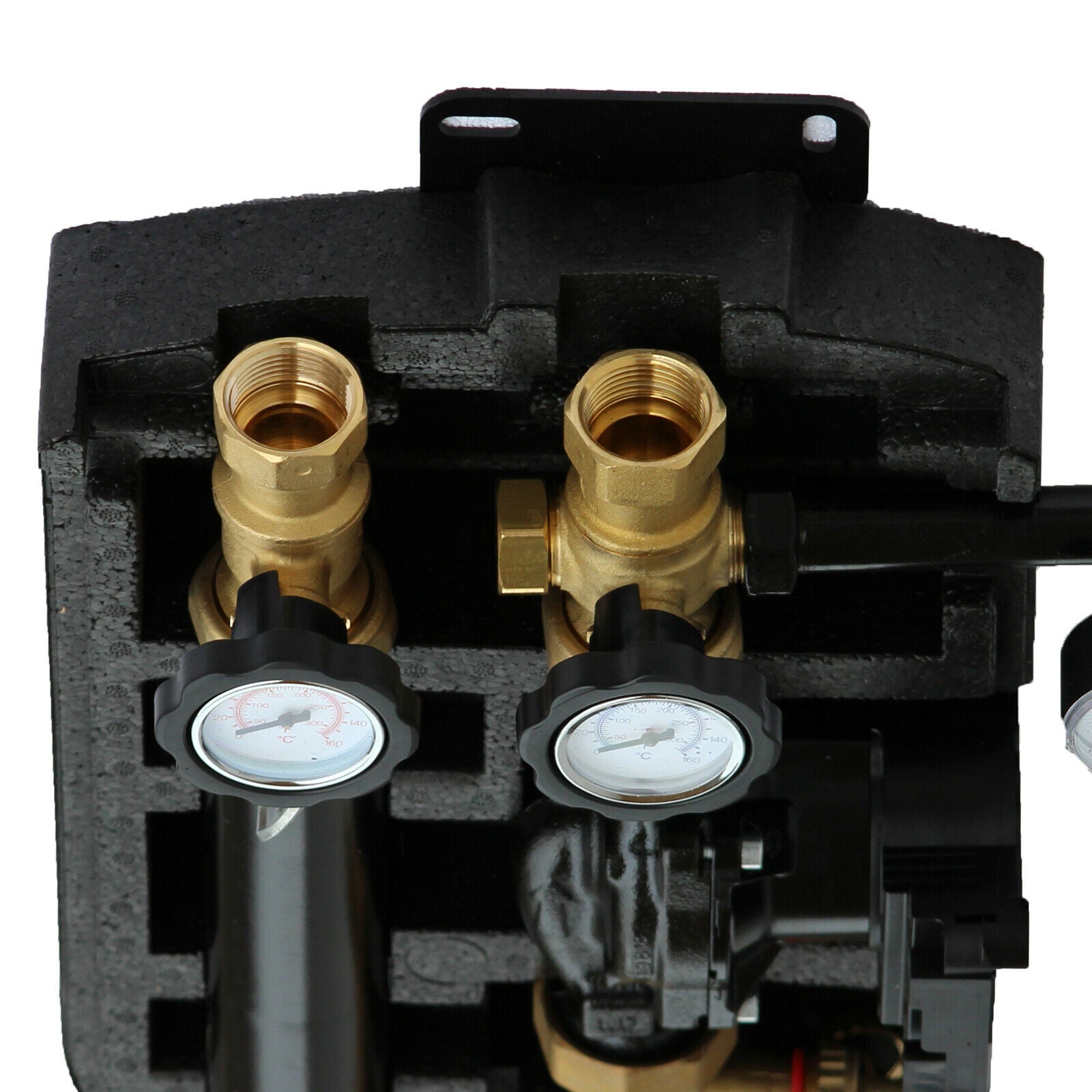 Komfort: Wartung/Entlüftung/Pumpentausch ohne Anlagen-Entleerung, integrierter Entlüfter + Thermometer & Schwerkraftbremse